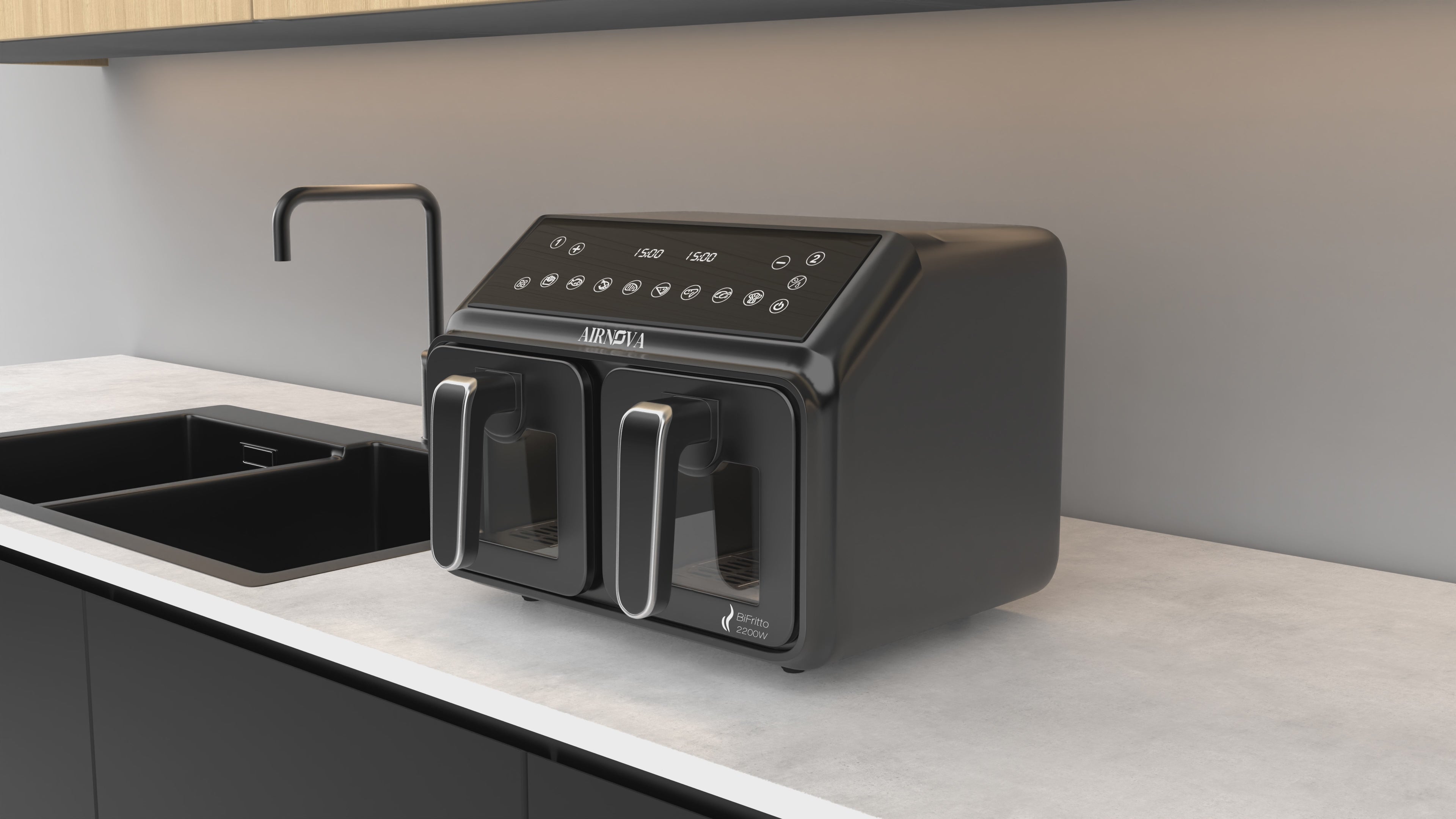 Experience fast, tasty, and healthy cooking with the AIRNOVA BiFritto 2200W Air Fryer, designed to significantly reduce oil usage while preserving the flavor of your favorite meals.